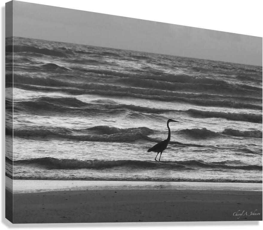 GREAT BLUE HERON WADING FOR BREAKFAST ~ BLACK AND WHITE NORTH PADRE ISLAND CHERYL A JOHNSON  Canvas Print