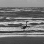Get this artwork "Great Blue Heron Wading for Breakfast ~ black and white North Padre Island" in a framed print.