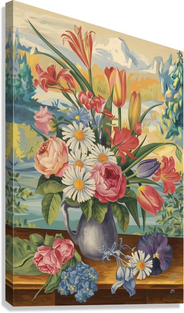 A VINTAGE INSPIRED COLORFUL FLORAL PAINT 3LNWNX4K LOTFI78  Canvas Print
