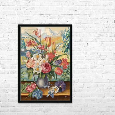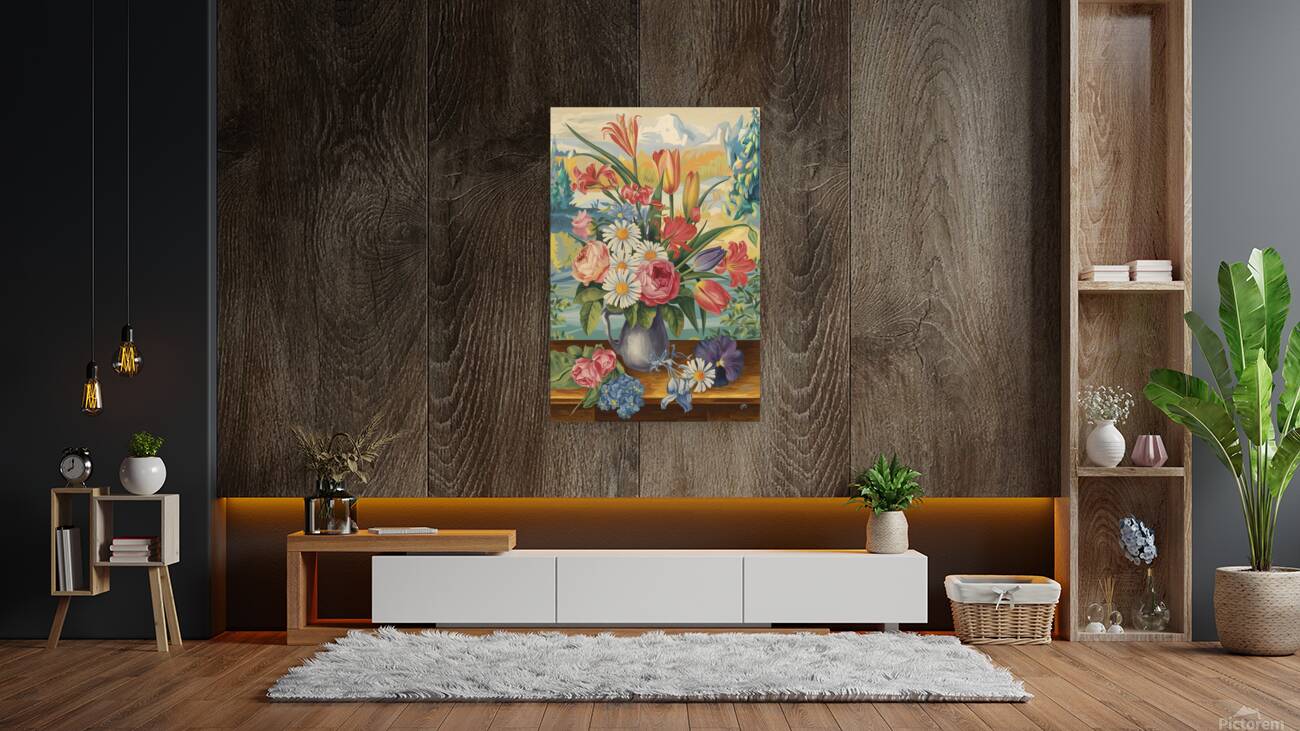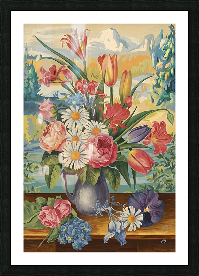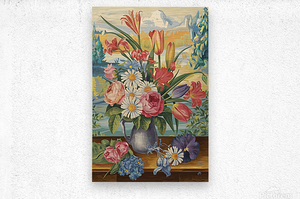 ABOUT THIS ARTWORK: A VINTAGE INSPIRED COLORFUL FLORAL PAINT 3LNWNX4K