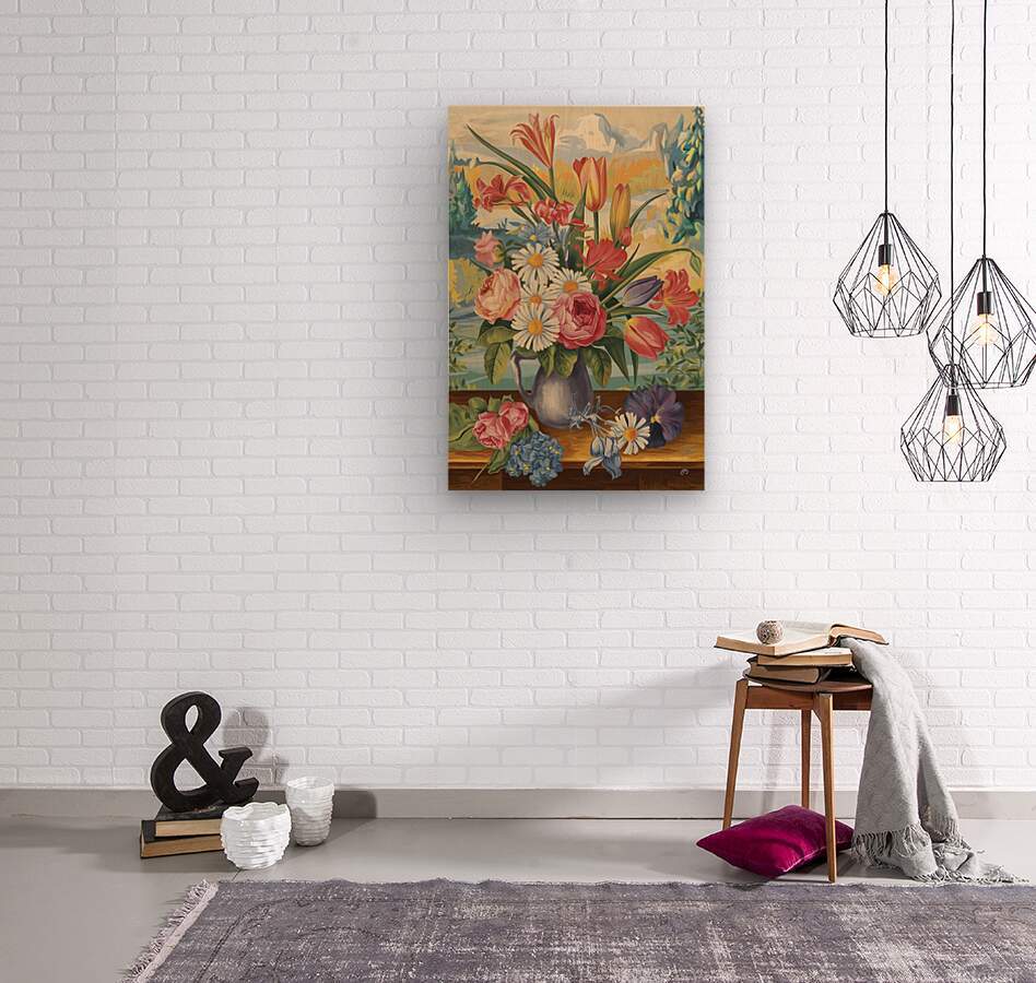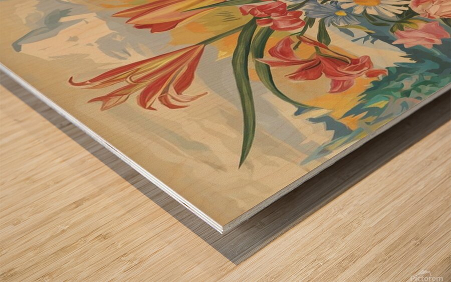 a vintage inspired colorful floral paint 3lNWNX4k  Wood print