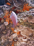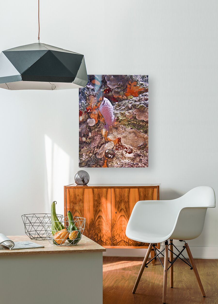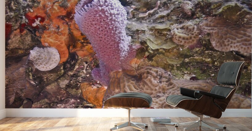 A brilliant soft coral sponge rises from the hard coral formation. Produced specifically by DeepEarth Photography for use in the hospitality industry. No warranties are stated or implied. Credits: DeepEarth Photography