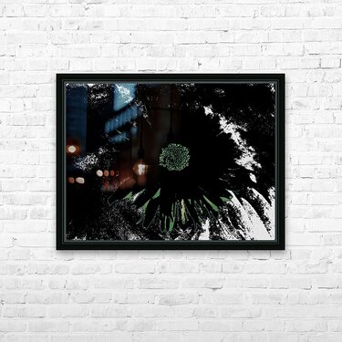 Abstract Dark Daisy on a Dark Abstract Background Wall Decor Frame