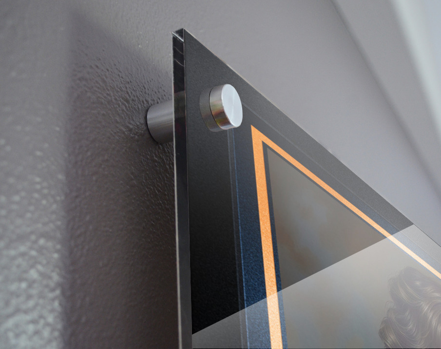Printed to the edge - Ready to hang - provided with 4 premium polished aluminum stand off ( wall screws and mounting hardware provided )