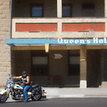 Photographed in Fort MacLeod, Alberta. The Queen's Hotel was built in 1886 and rebuilt in 1903. Its sandstone exterior withstood a devastating fir...[+]