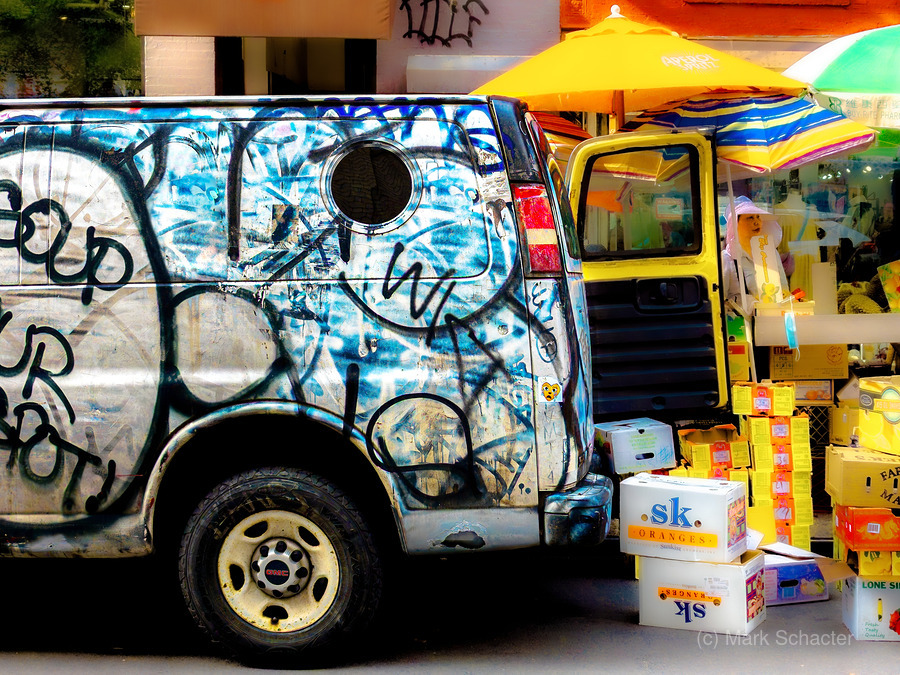 Photographed in New York, New York. This is what it feels like to wander around Chinatown in New York City. Vans up on sidewalks, crates being unloaded, merchandise arrayed in waist-level stalls, bright colors and a mix of smells pleasant and unpleasant. Purchase a limited edition print of this fine art photograph.
