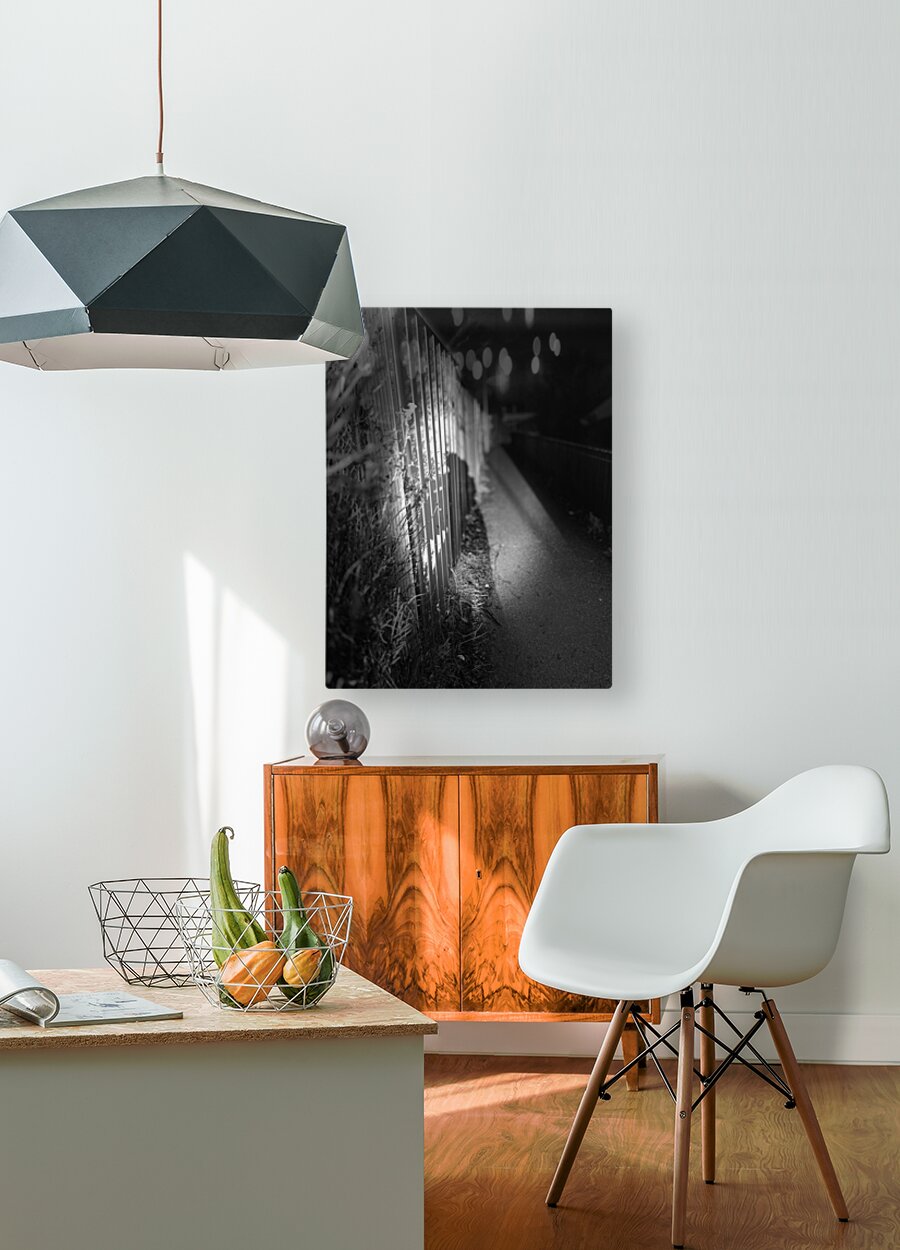 I took this photo during a walk through the Scottish Highlands. Features a dimly lit path stretches alongside a fence at night, with shadows cast by n...[+]