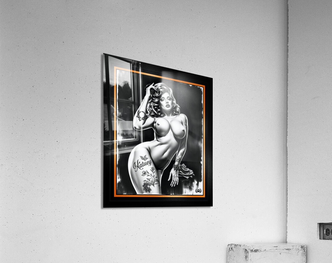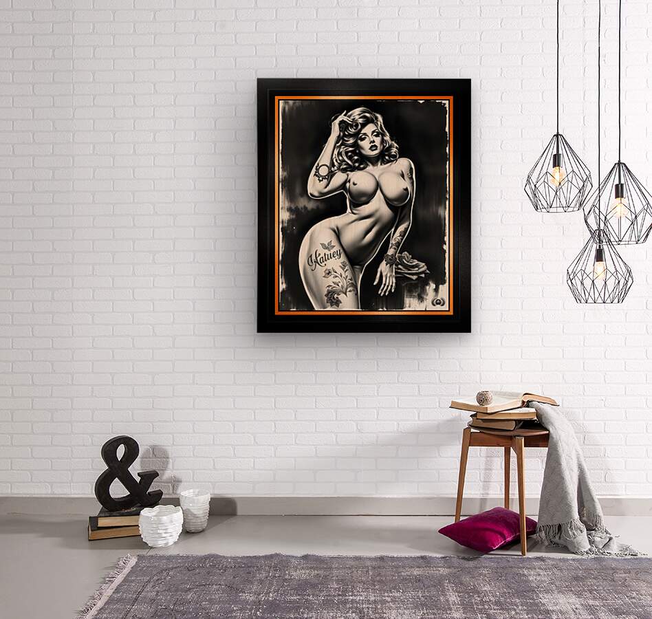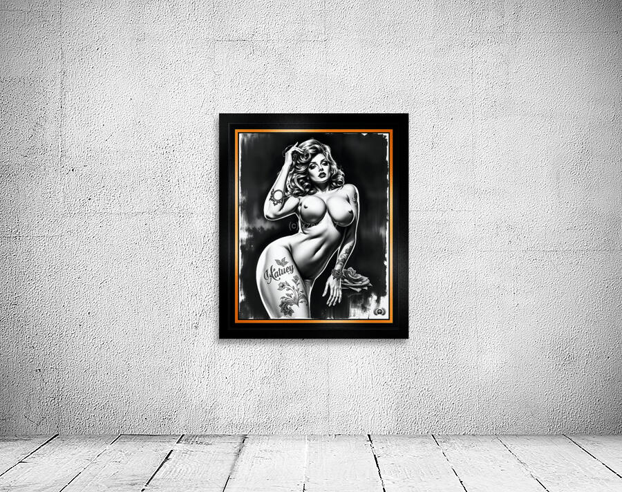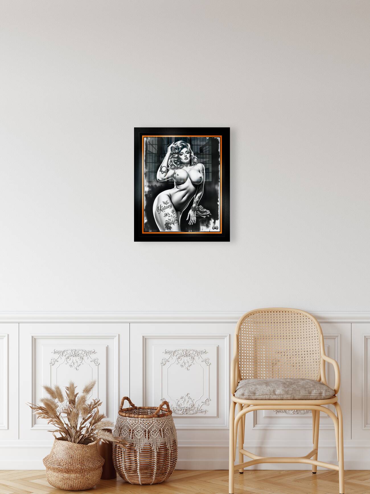 Vintage Black And White Sultry Pinup Glamour Girl Nude Gorgeous AI Concept Art by Xzendor7 Wall Decor Frame