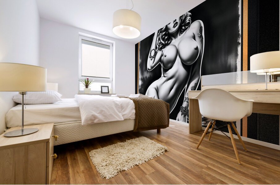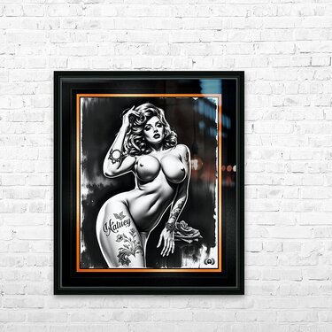 Vintage Black And White Sultry Pinup Glamour Girl Nude AI Concept Art by Xzendor7; captures the timeless allure of mid-century pin-up aesthetics with a modern twist. This captivating artwork showcases a confident and sensual woman adorned with intricate tattoos, all rendered in striking monochrome tones. The piece blends classic glamour with personal expression, highlighting the subject's curvaceous form and expressive gaze. With meticulous attention to detail and a sophisticated retro style, this artwork evokes a nostalgic yet contemporary feel, celebrating both beauty and individuality. Read The Story At: https://xzendor7.com/vintage-black-and-white-sultry-pinup-glamour-girl/