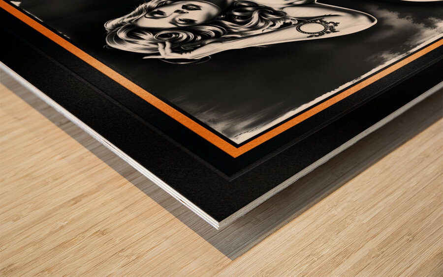 Vintage Black And White Sultry Pinup Glamour Girl Nude Gorgeous AI Concept Art by Xzendor7  Wood print