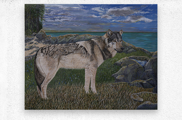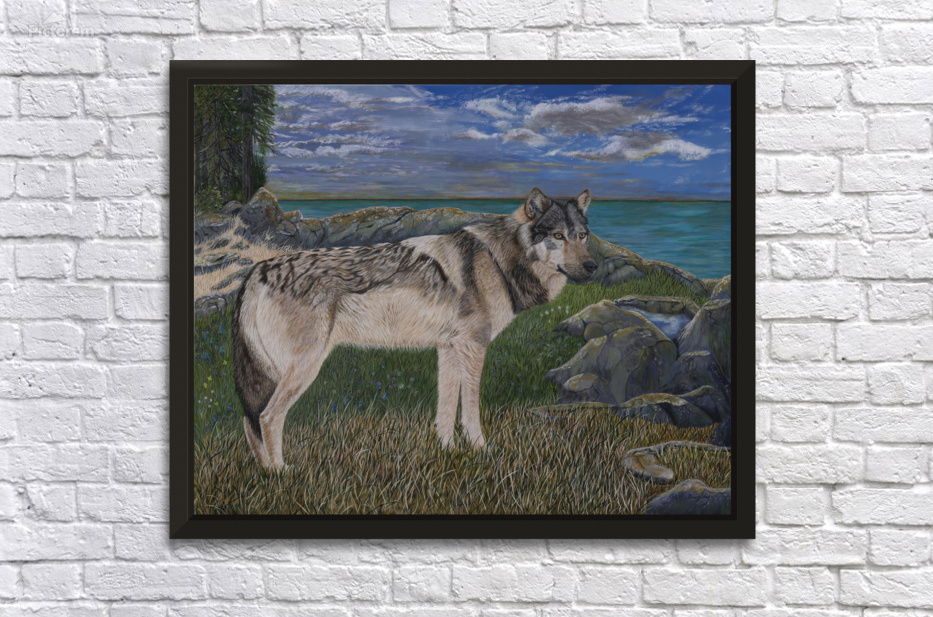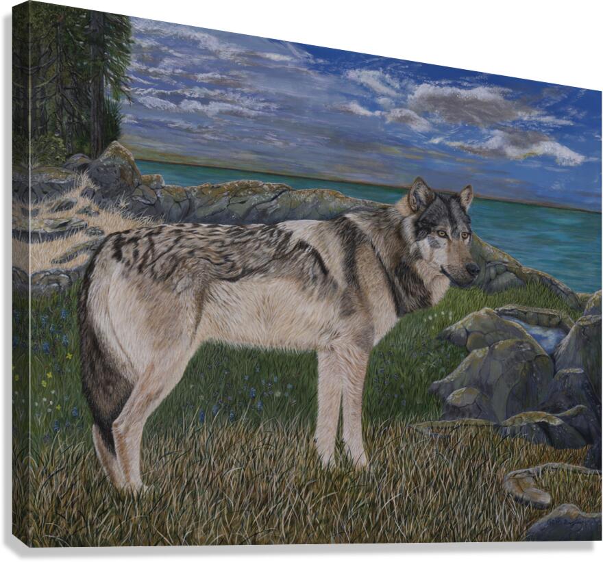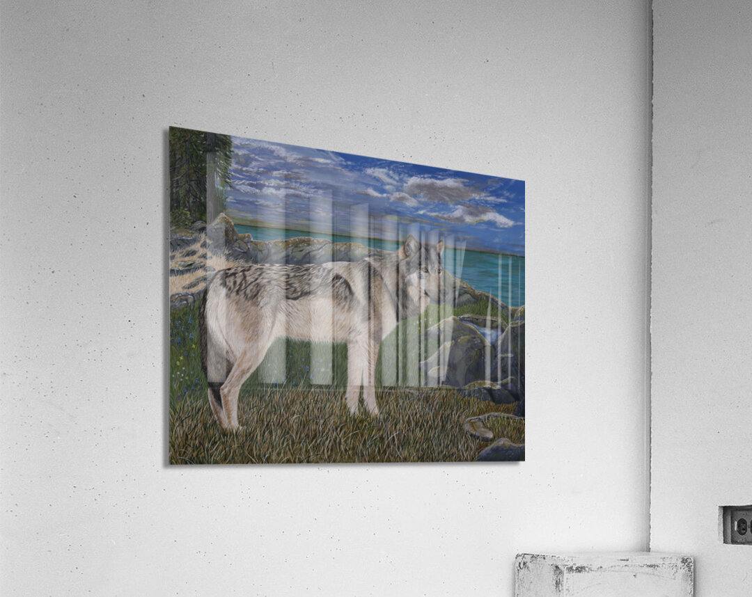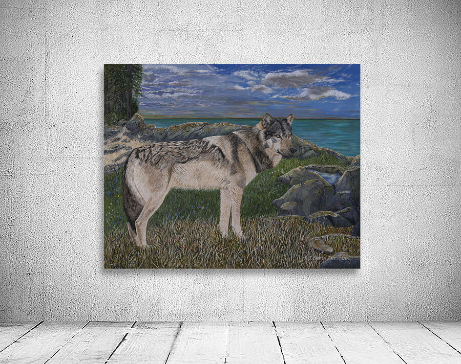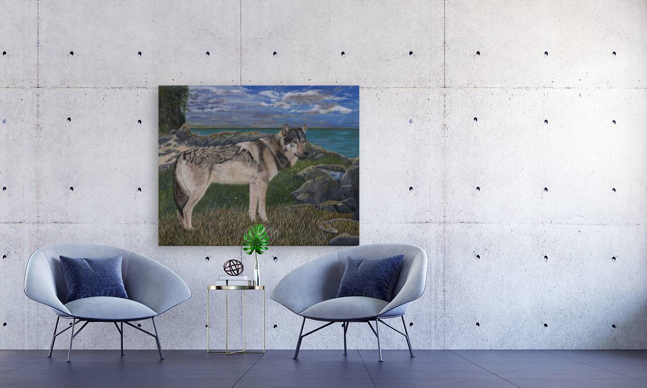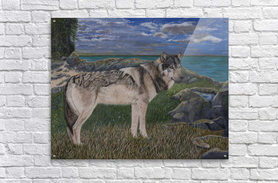 The original painting was done in acrylic on linen as a tribute to the lone wolf of Discovery Island named Takaya.