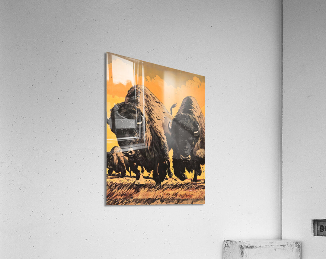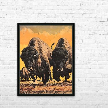 Vintage Buffaloes Running | Original Artist Fred Ludekens | Row One | Over 17,000 Historic Art Prints | Created from Fred Ludekens vintage Buffalo art and remixed for aesthetics, this vintage 1950s buffalo art will look terrific in your home or office. Derivative art © 2025 Row One Brand