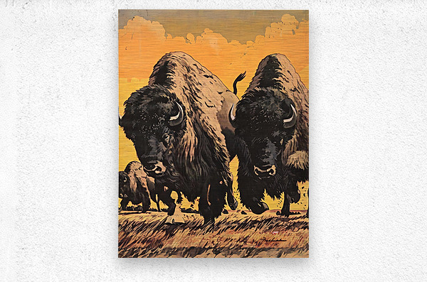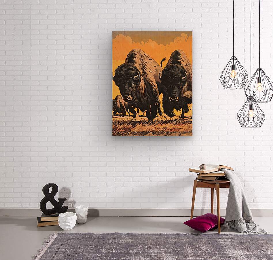 Vintage Buffalo Art by Fred Ludekens  Wood print