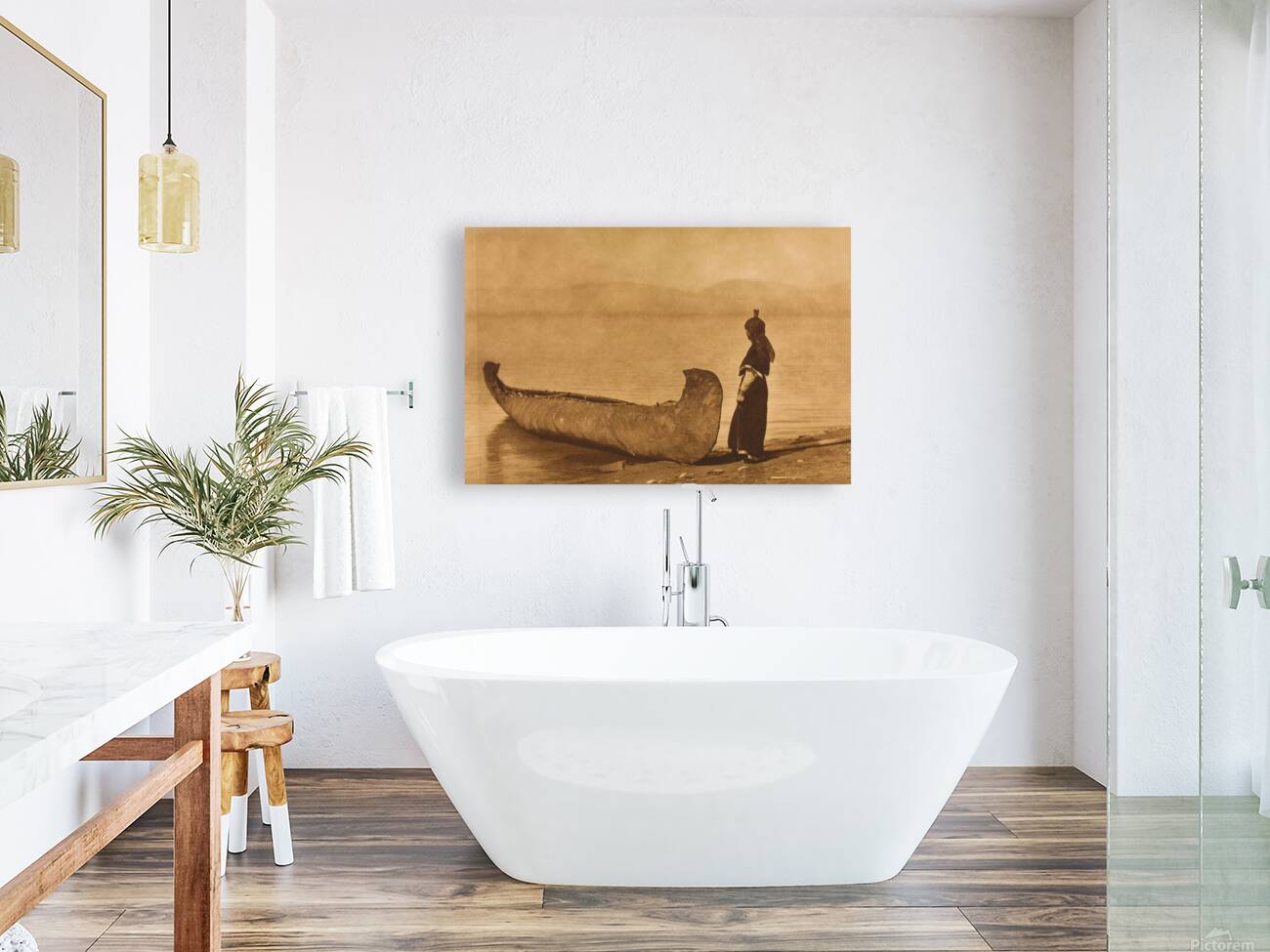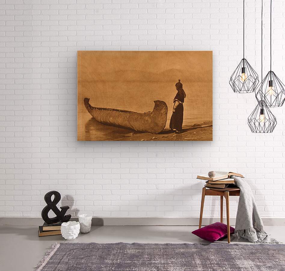 On the Shore of the Lake Kutenai by Edward S. Curtis 1910  Wood print