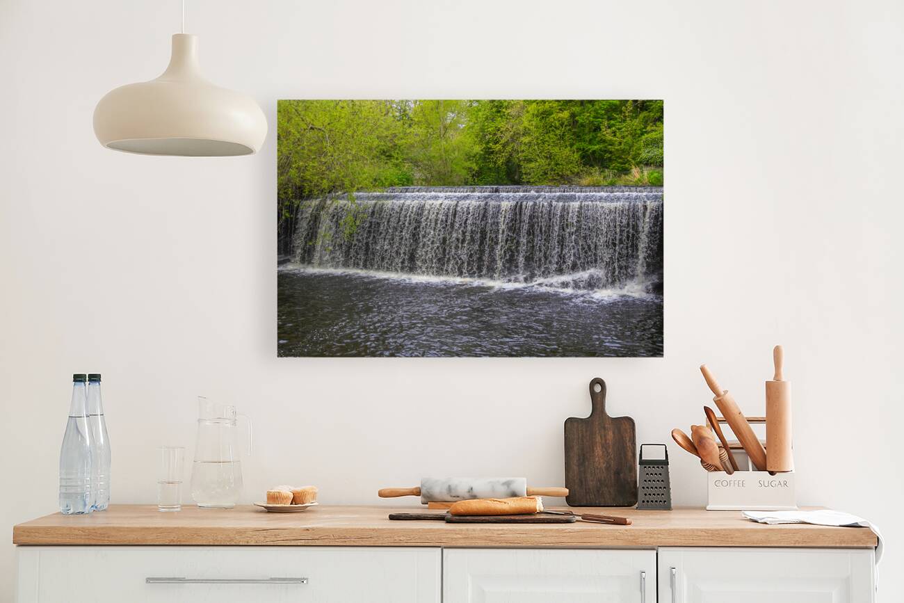 The photo of the weir on river Leith in Dean Village, Edinburg, captures a moment frozen in time, a gentle flow that tells the story of resilience and...[+]