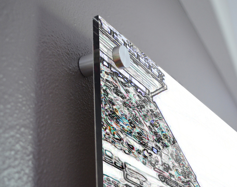 Printed to the edge - Ready to hang - provided with 4 premium polished aluminum stand off ( wall screws and mounting hardware provided )