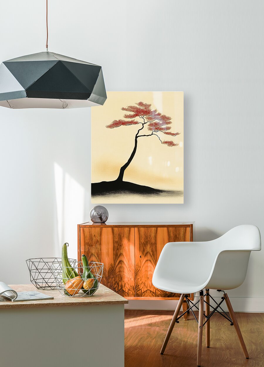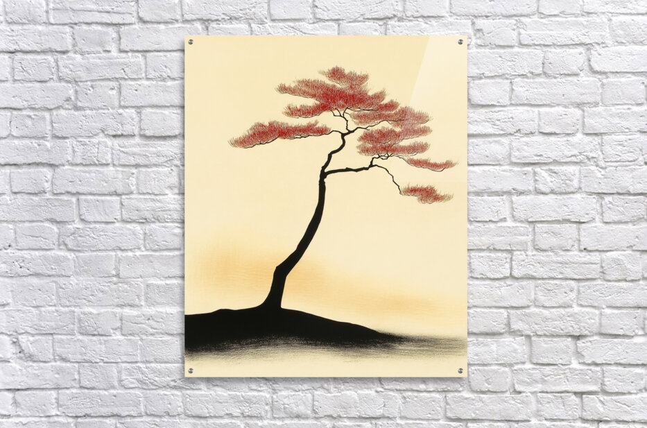 A solitary tree with red foliage stands against a minimalist background its trunk and branches elegantly reaching skyward. The gradient backdrop enhan...[+]