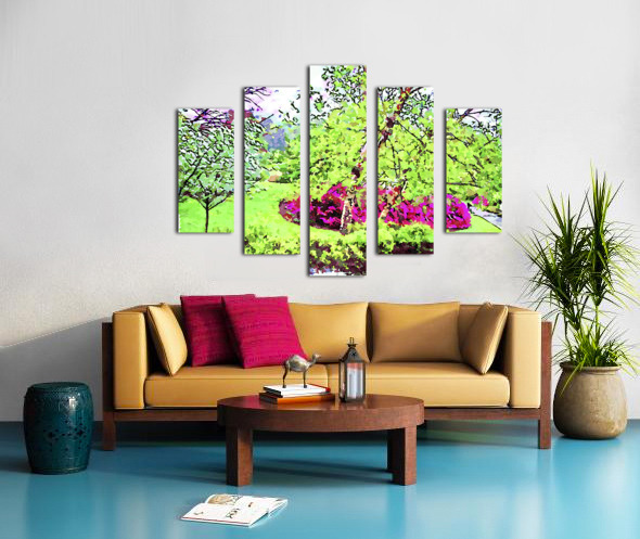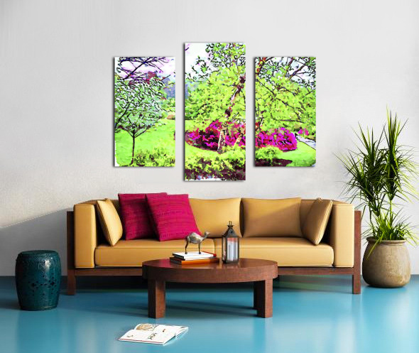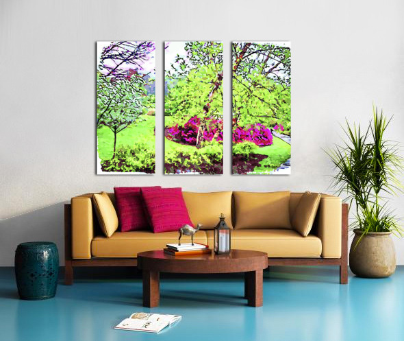 Vibrant watercolor landscape of a lush spring garden Canvas print