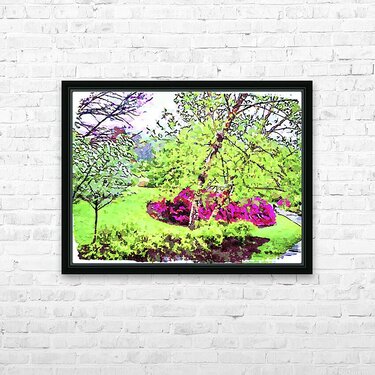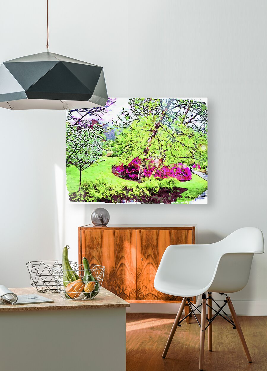 Get this artwork "Vibrant watercolor landscape of a lush spring garden" in a framed print.