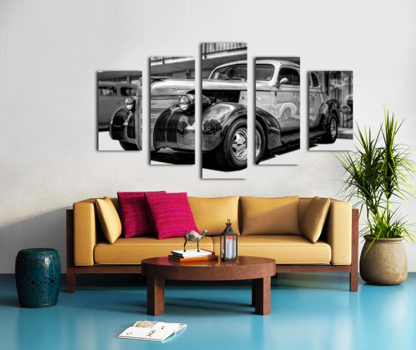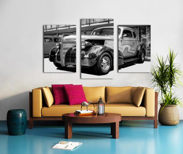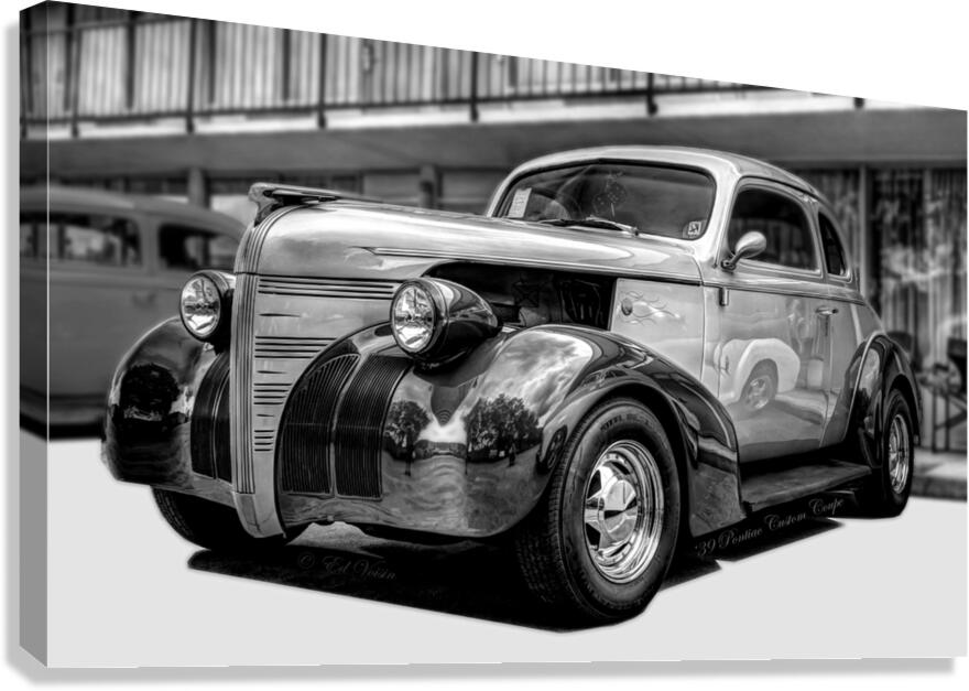 1939 PONTIAC CUSTOM COUPE B&W Canvas print