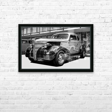 1939 PONTIAC CUSTOM COUPE B&W Frame print