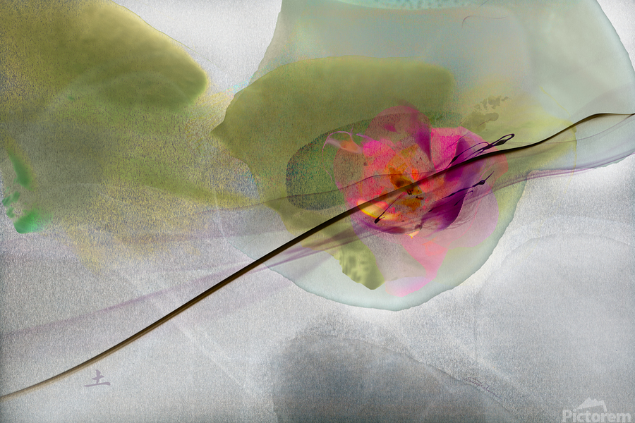 Beautiful modern printable abstract art. I created these abstracts using a unique technique I developed over 50 years of painting experience. I use a mixed media technique on a metal substrate. I add texture, I paint with air brush, oils, and acrylics applied to multiple layers of resin. The end result is stunning and these prints capture the essence of the art. A stunning addition to any interior space. This was my first abstract of the ancient elements series and first using an orchid as inspiration. The Chinese symbol for earth is visible the lower left corner of the painting.