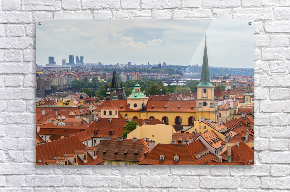 Get this artwork "Prague panorama with Saint Thomas Church and Old town bridge tower and Vltava river - CZECHIA" in a framed print.