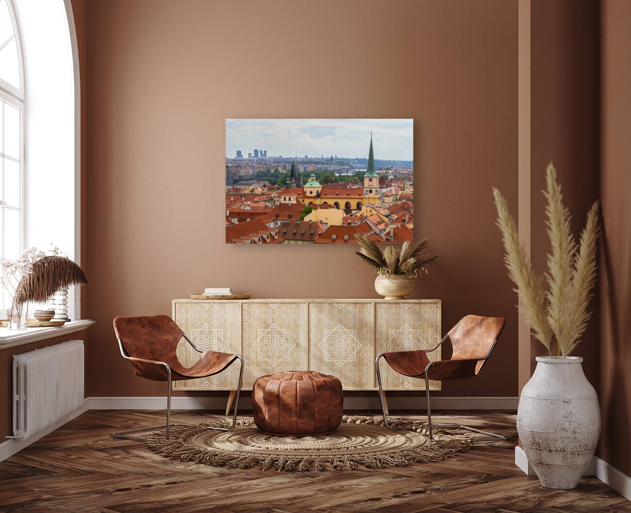 Prague panorama with Saint Thomas Church and Old town bridge tower and Vltava river - CZECHIA Picture Frame Printing