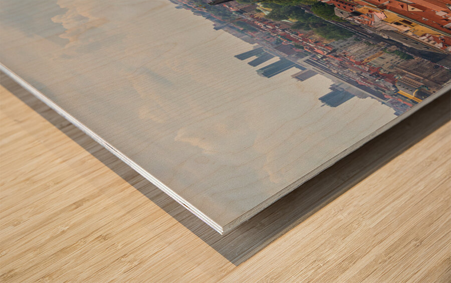 ABOUT THIS ARTWORK: PRAGUE PANORAMA WITH SAINT THOMAS CHURCH AND OLD TOWN BRIDGE TOWER AND VLTAVA RIVER - CZECHIA