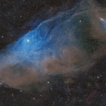 IC 4592 (also known as the Blue Horsehead Nebula) is a reflection nebula in the Scorpius constellation that is lit by Nu Scorpii.