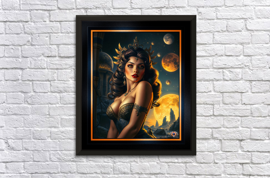 Cosmic Elegance Of Celasia Enchanting Queen Of The Planet Metara Mesmerizing AI Concept Art by Xzendor7 Wall Decor Frame
