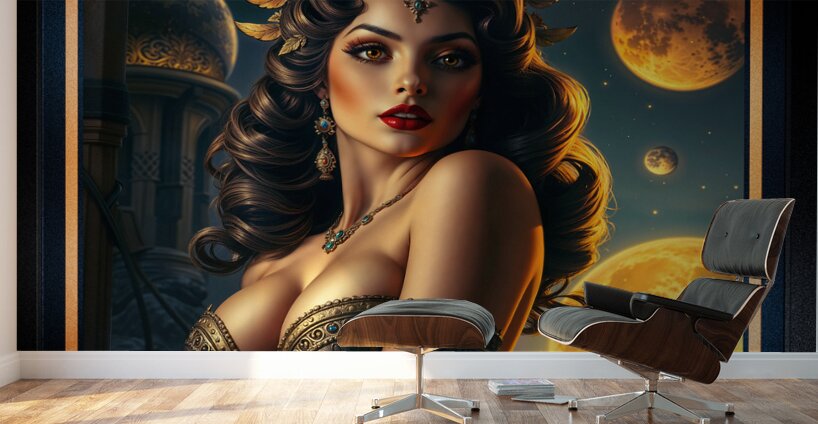 Cosmic Elegance Of Celasia Enchanting Queen Of The Planet Metara Mesmerizing AI Concept Art by Xzendor7  Wood print