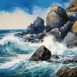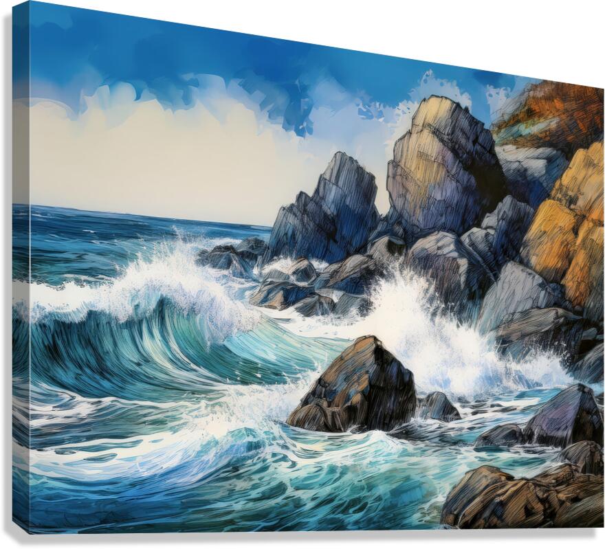 Get this artwork "Water Whacks Against Rocky Shores" in a framed print.