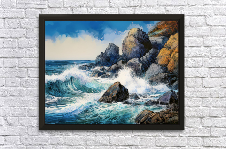 Water Whacks Against Rocky Shores Picture Frame Printing