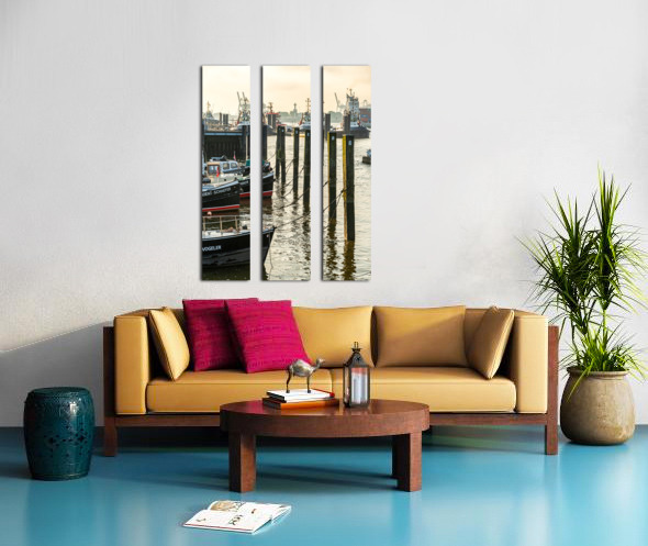 BOATS IN THE HISTORIC MUSEUM HARBOR IN HAMBURG ÖVELGöNNE AT THE ELBE RIVER AT SUNRISE  CALADOART  Canvas Print