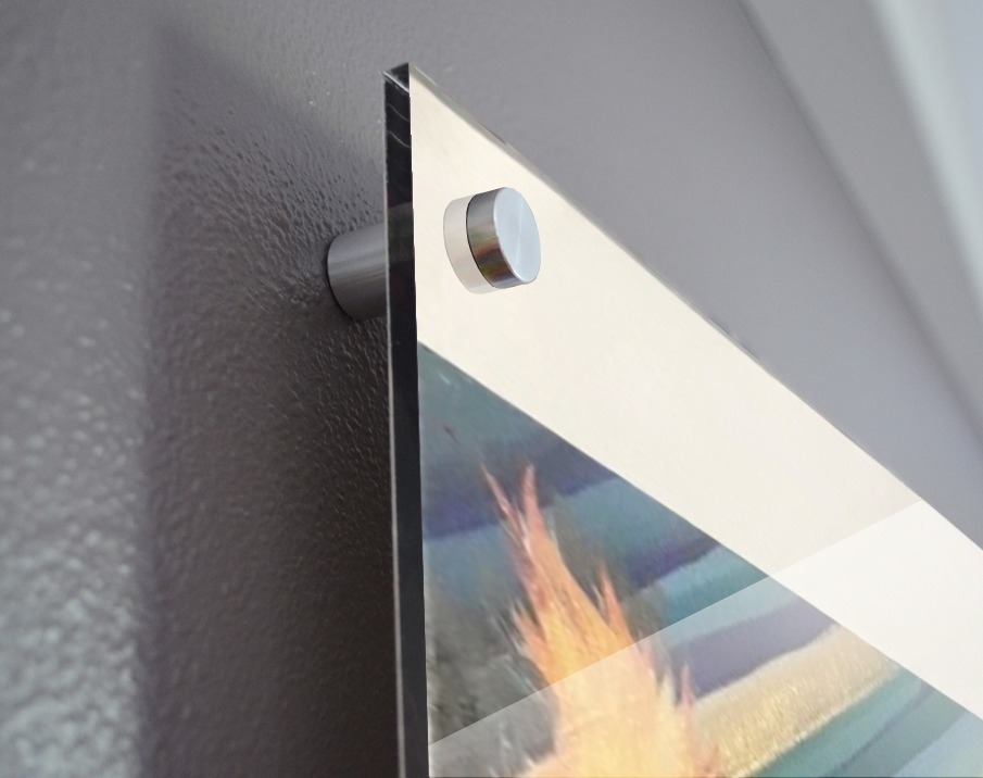 Printed to the edge - Ready to hang - provided with 4 premium polished aluminum stand off ( wall screws and mounting hardware provided )