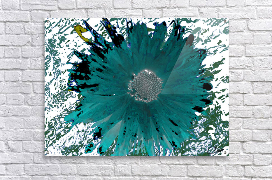 ABOUT THIS ARTWORK: ABSTRACT TEAL DAISY FLOWER