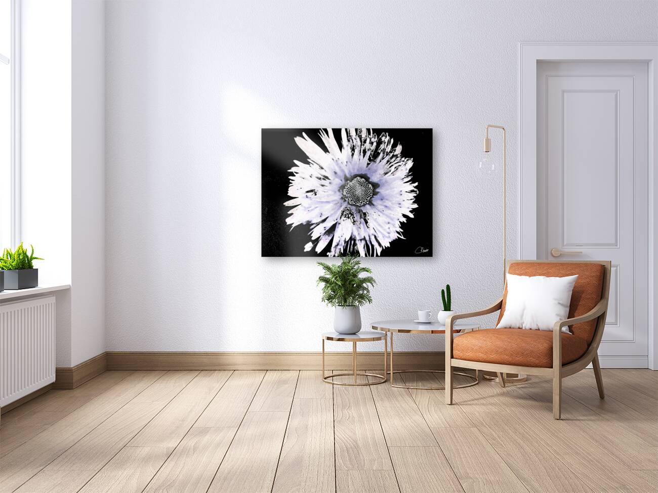 Originally a close up photo of a Daisy flower and a hand painted acrylic laterally digitally manipulated into a stunning piece of contemporary floral ...[+]
