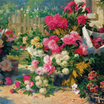 FLOWER BASKETS AND FLOWER POTS IN A GARDEN [1887] BY ALFRED PETIT [–1895]