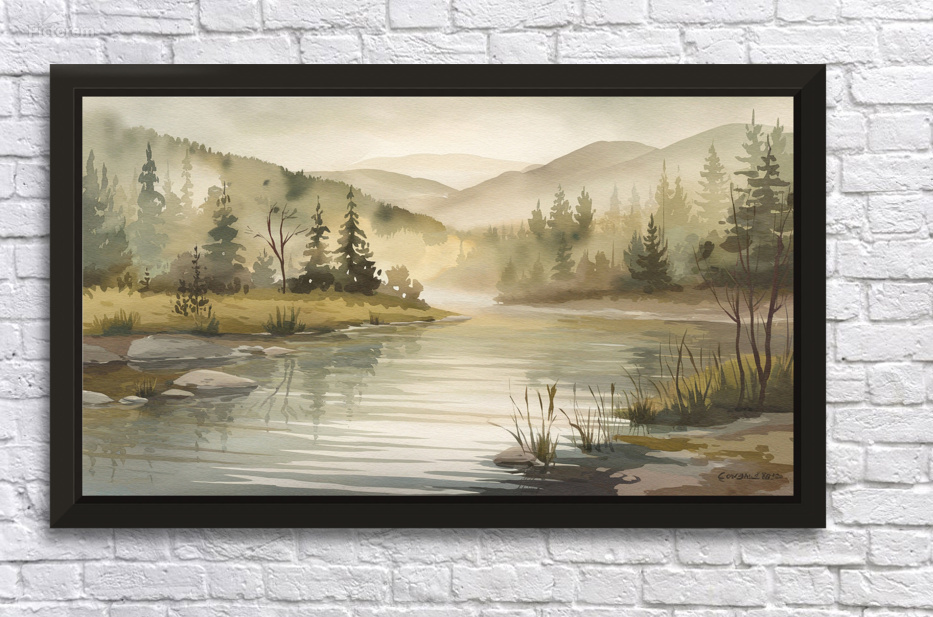 ABOUT THIS ARTWORK: A SERENE WATERCOLOR STYLE LANDSCAPE PAIN SYJ7AGUO
