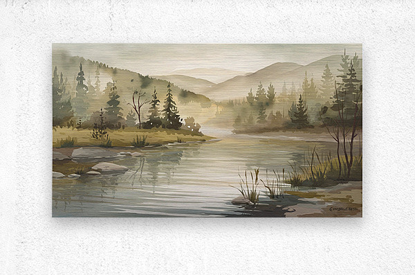 a serene watercolor style landscape pain SYJ7Aguo Metal print