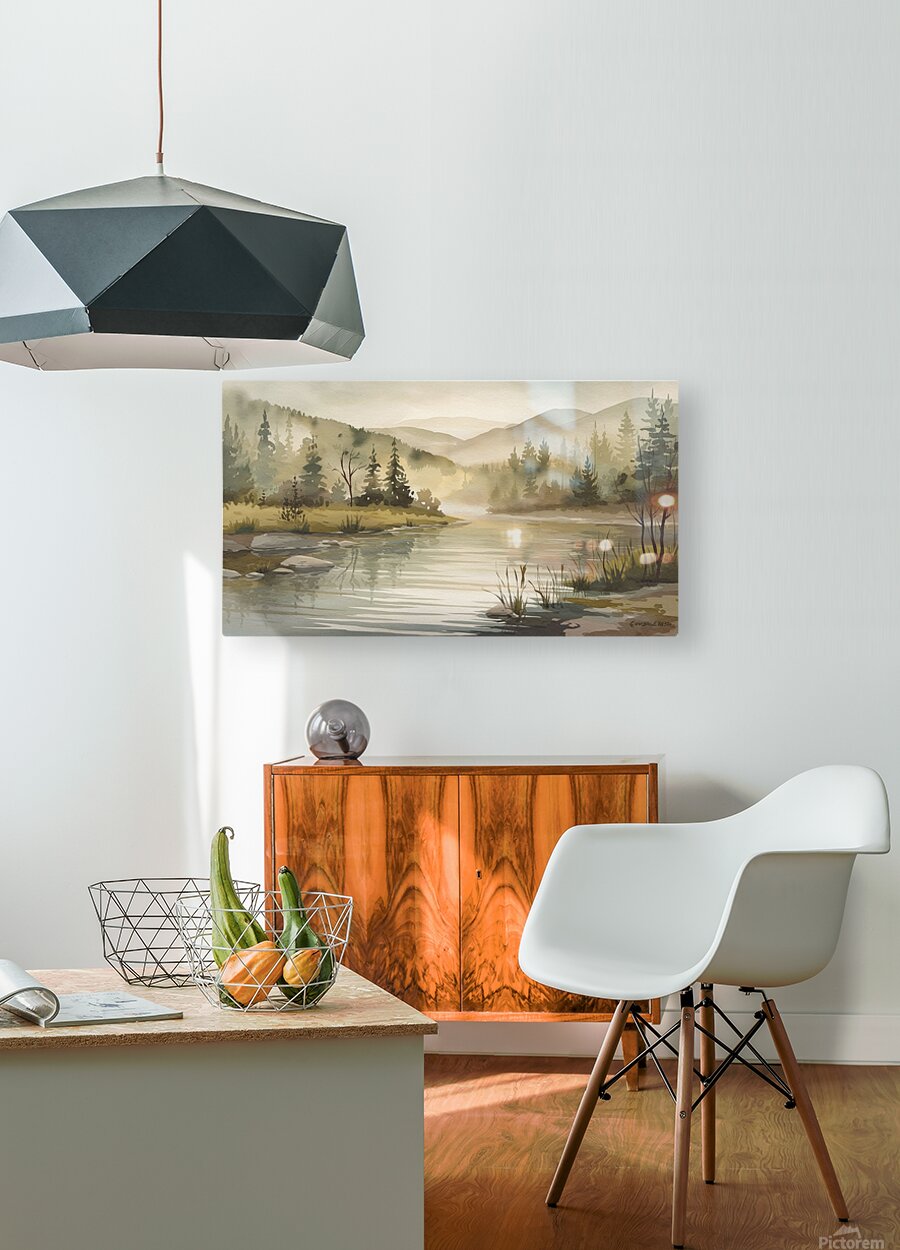 a serene watercolor style landscape pain SYJ7Aguo HD Sublimation Metal print with Decorating Float Frame (BOX)