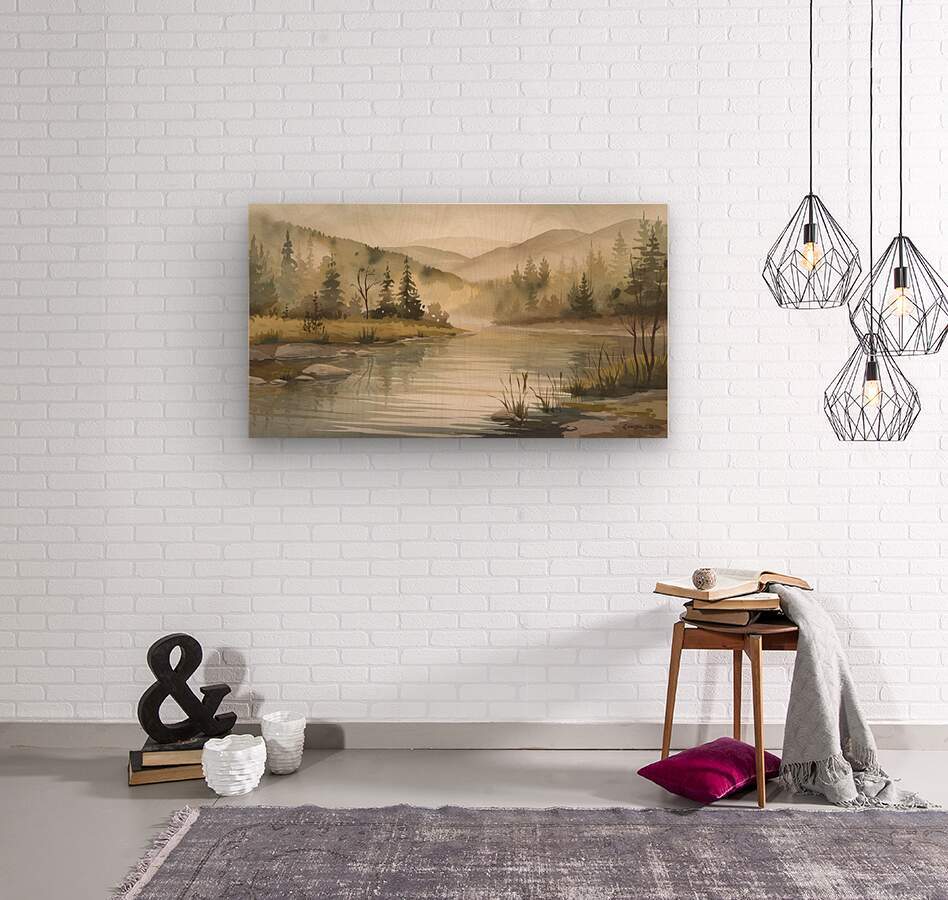 a serene watercolor style landscape pain SYJ7Aguo  Wood print