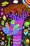 A hand drawn doodle inspired design created using coloured ink pens and paper. Feature a vibrant scene showing an array of colorful, abstract plants a...[+]
