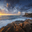 Boccale castle and the sandstone rocks of Romito during a storm at sunset. Livorno, Tuscany region, Italy, Europe