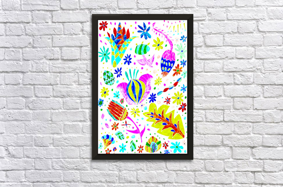 Abstract Decorative Whimsical Flowers Picture Frame Printing