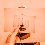 In the spiral of time a male hand reaches for an object spiraling into minuscule dimensions symbolizing the passage and compression of time.