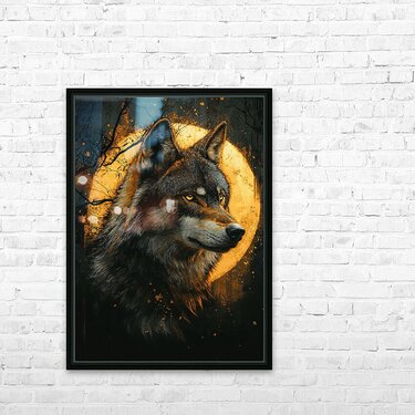 A breathtaking moody wolf portrait set against a glowing golden moon, capturing the essence of power, wisdom, and mystery. The intricate details of the wolf’s fur, highlighted by warm golden hues, create a mesmerizing contrast against the dark, enchanted forest backdrop. The blend of wild beauty, gothic elements, and fantasy-inspired aesthetics makes this a striking piece for those drawn to nature, mythology, and spiritual symbolism. Perfect for lovers of wolves, lunar themes, and mystical artwork, this piece embodies a sense of strength, independence, and connection to the wild. Whether displayed in a living space, creative studio, or sacred corner, it adds a sense of mysticism and fierce elegance to any setting.