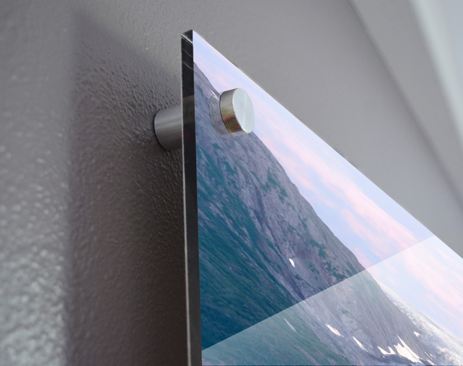 Printed to the edge - Ready to hang - provided with 4 premium polished aluminum stand off ( wall screws and mounting hardware provided )