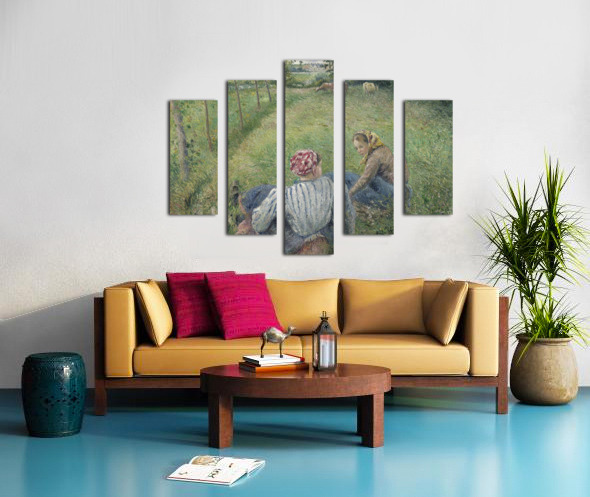 Young Peasant Girls Resting in the Fields near Pontoise [1882] by Camille Pissarro [1830–1903] Canvas print